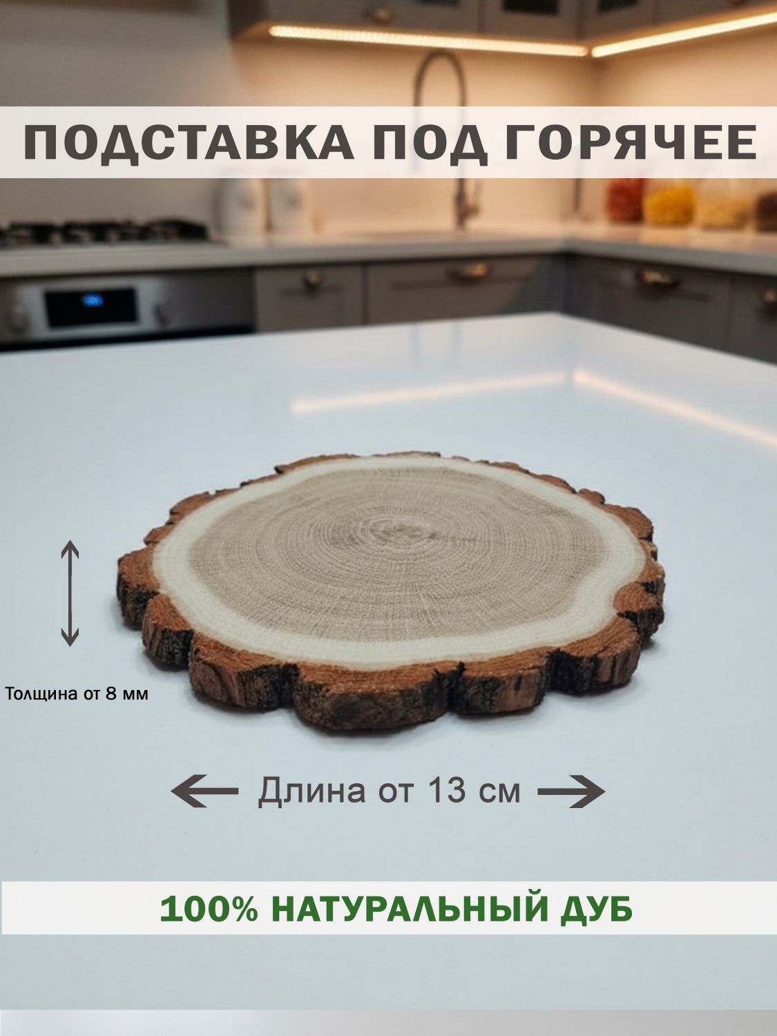 Подставка под горячее - это незаменимый аксессуар для любого дома или офиса. Она поможет вам сохранить чистоту и порядок на вашей рабочей поверхности, а также предотвратит скольжение горячих предметов. Подставка под горячее изготовлена из дуба, который обеспечивает долгий срок службы и удобство использования. В комплекте 1 подставка. Собственное производство изделий из дуба.